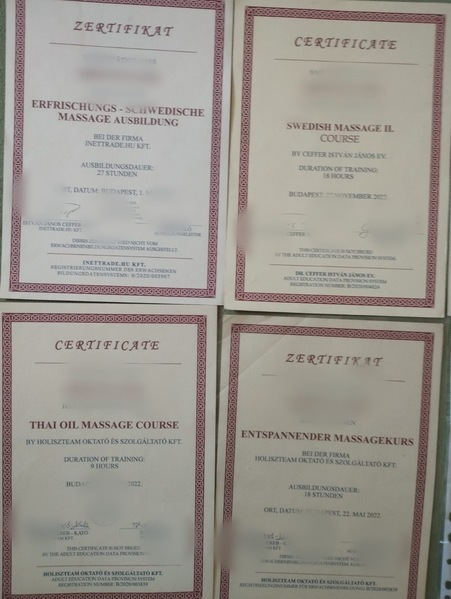 Ich bin zertifizierte Masseurin mit nachweisbaren Ausbildungen – meine Papiere sind sichtbar und echt